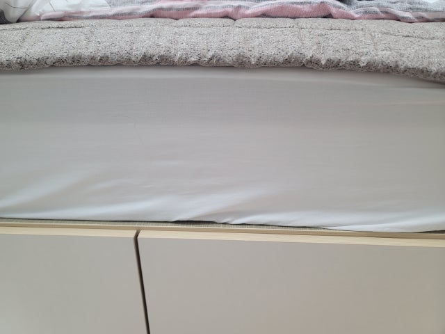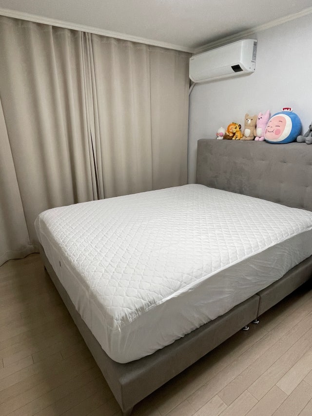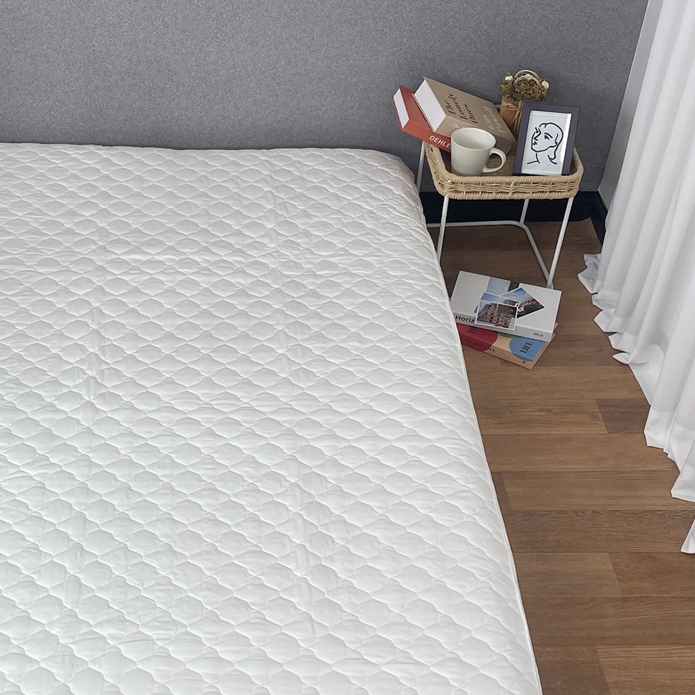 화이트라 아무침구류나 무난할것 같아서 샀어요. 모서리 부분은 고무줄로 매트리스 잘 감싸서 쓰는데 옆, 뒷부분은 커버정리 잘 해줘야 됩니다. 살이 민감한 편인데 맨살에 닿으면 보드라운 편은 아니라서 패드는 꼭 깔고 자야할것 같아요.가성비 좋으니 잘 쓸께요.
