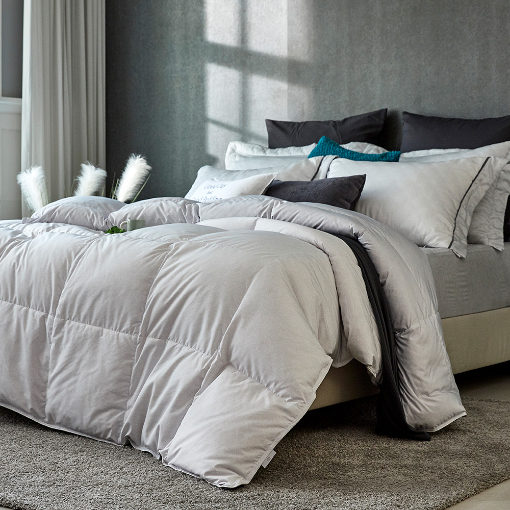 (겉감)모달45% 폴리에스터55%, (충전재)거위털100% (솜털70%, 깃털30%) - 헝가리산