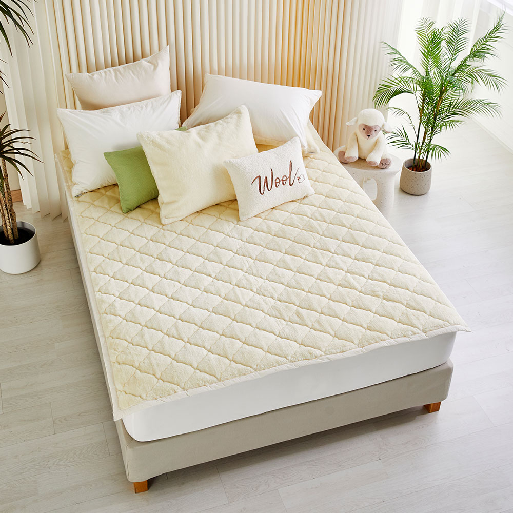 이불전용 세탁망과 울세제를 사용하여 30도 이하의 미온수에 울코스로 단시간 세탁해주세요. 잦은 세탁은 기능 저하의 원인이 되어 1년에 한번 세탁을 권장하며, 오염시 부분 세탁해 주세요. 파일 양모 특성상 마른 수건으로 세탁 후 양모의 결을 쓸어주면 좋습니다.