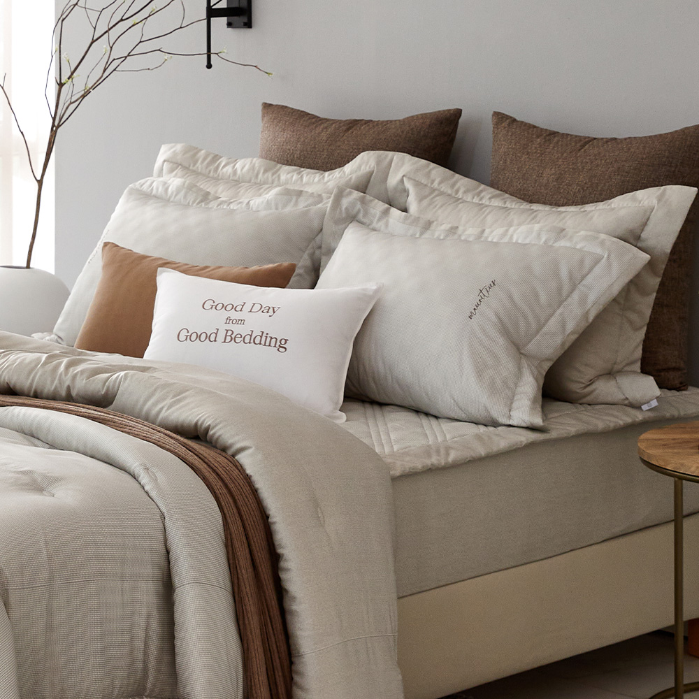 슈퍼싱글(SS) : 차렵이불S 1개, 패드SS 1개, 베개커버L 1개 / 퀸(Q) : 차렵이불Q 1개, 패드Q 1개, 베개커버L 2개 / 킹(K) : 차렵이불Q 1개, 패드K 1개, 베개커버L 2개